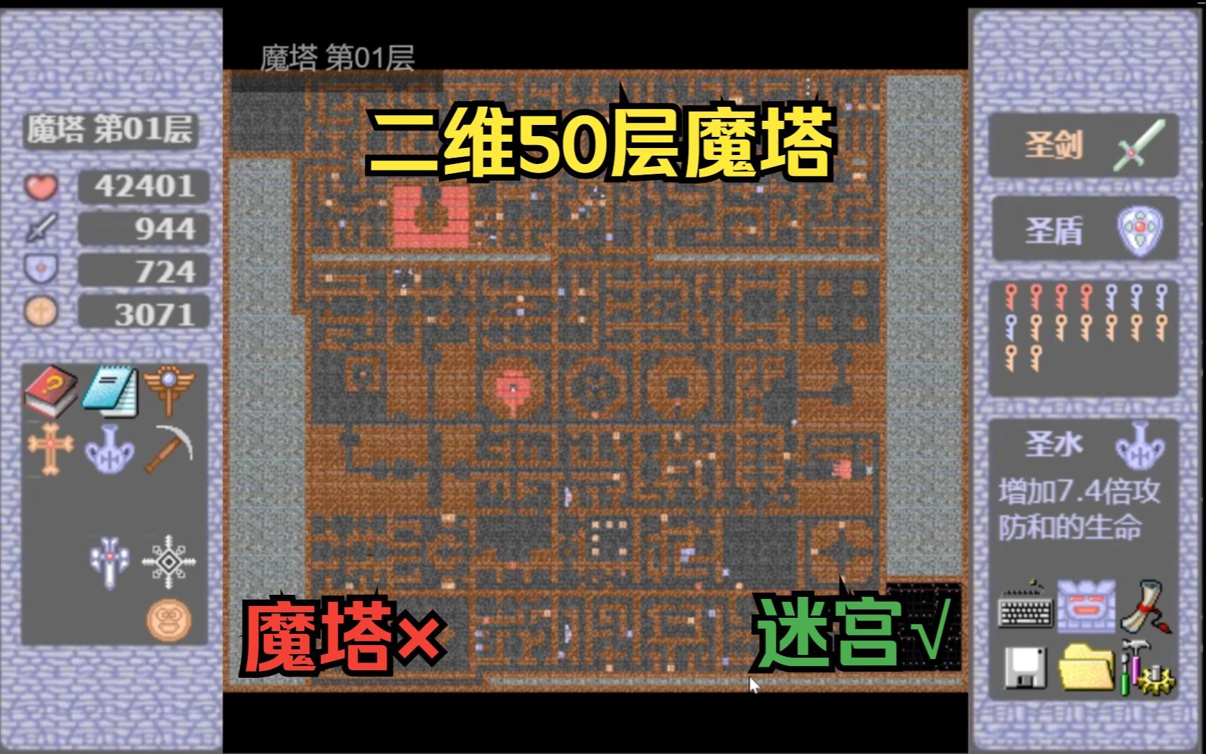 2、魔塔50层中铁镐可以在取圣剑前面的层数灵活使用铁镐是杀死15层大乌贼获得的,可以破开勇士身前的一面墙原版和汉化版可以破身旁的3面墙拿圣剑不需要用铁镐,用飞至本层中心的道具,可以触发隐藏怪打开门由于圣剑门可以打开,镐可以在取圣剑前面的层数灵活使用,比如取37层宝石或炸弹日本人的。