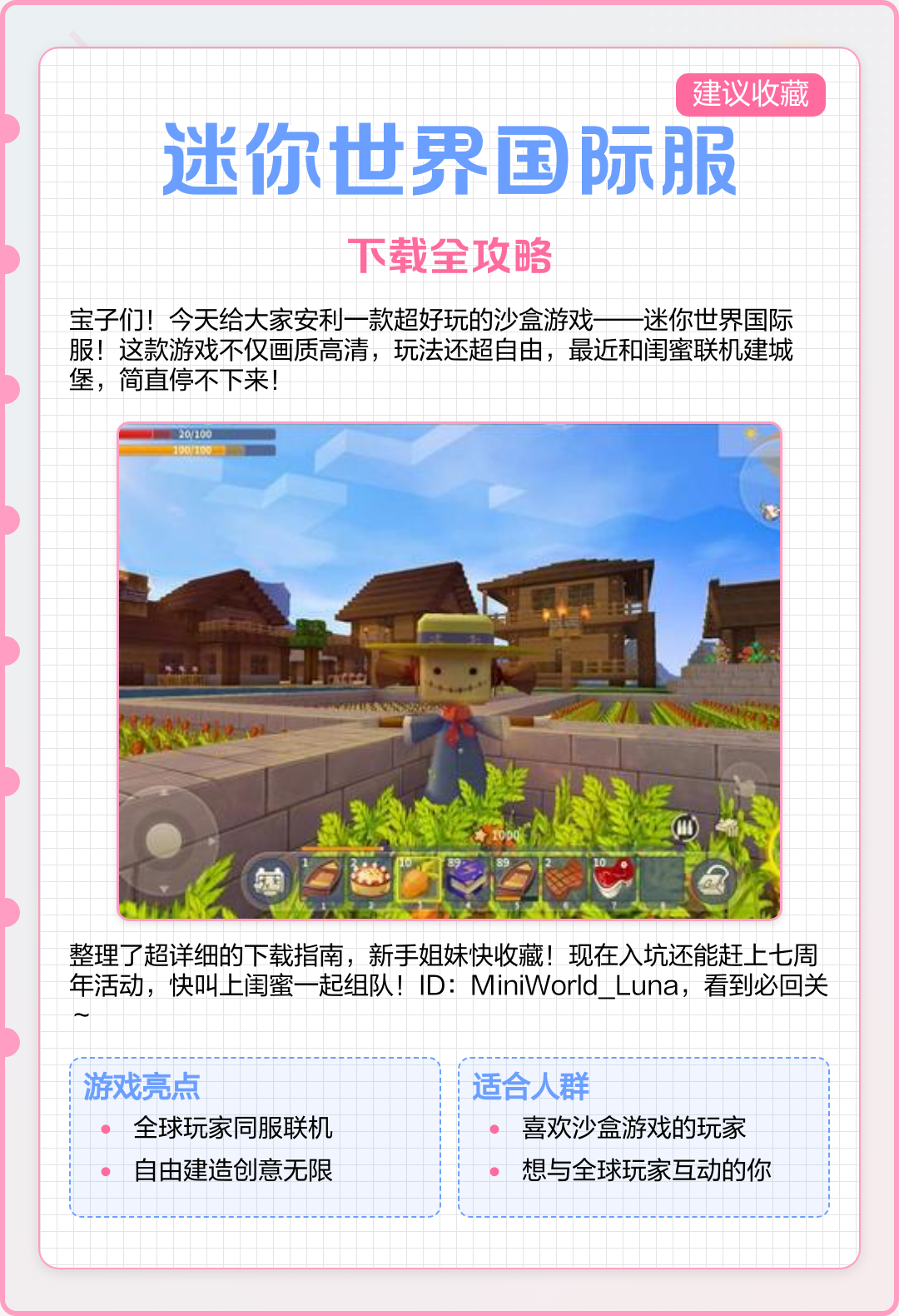 迷你世界国际服最新版玩起来非常不错的趣味手机冒险模拟游戏,全新的沙盒玩法看上去会更加的精致,画面品质相对于mc来说可能。