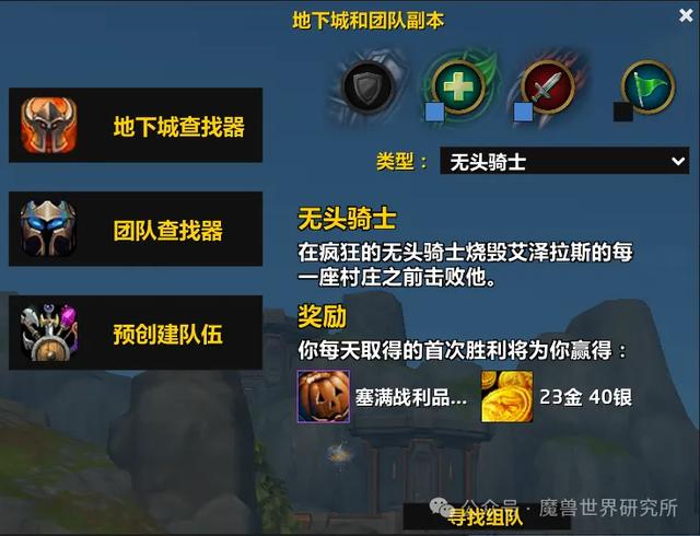 众所周知,无头骑士以其掉落飞行坐骑的吝啬而臭名昭著。这位5人副本首领位于血色修道院的墓地。玩家需要通过地下城查找器排队参与战斗,最低等级为10级!