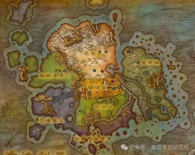 由于成就分阵营,将用不同颜色图钉标注,其中黄色为联盟部落都可以做的,蓝色为联盟专属,红色为部落专属,紫色为大地的裂变糖果(双阵营可拿)