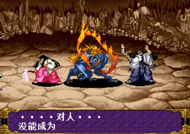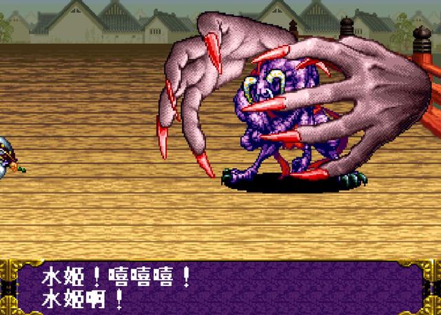 而在《侍魂》RPG这边的剧情中,对暗黑神降临的前因后果全都有交代,而且还通过和仲的描述,让我们知道了暗黑神的真实身份,它就是靠吸收人类绝望、恐惧和魔物的憎恨、怨念而复活的巨型怪物。