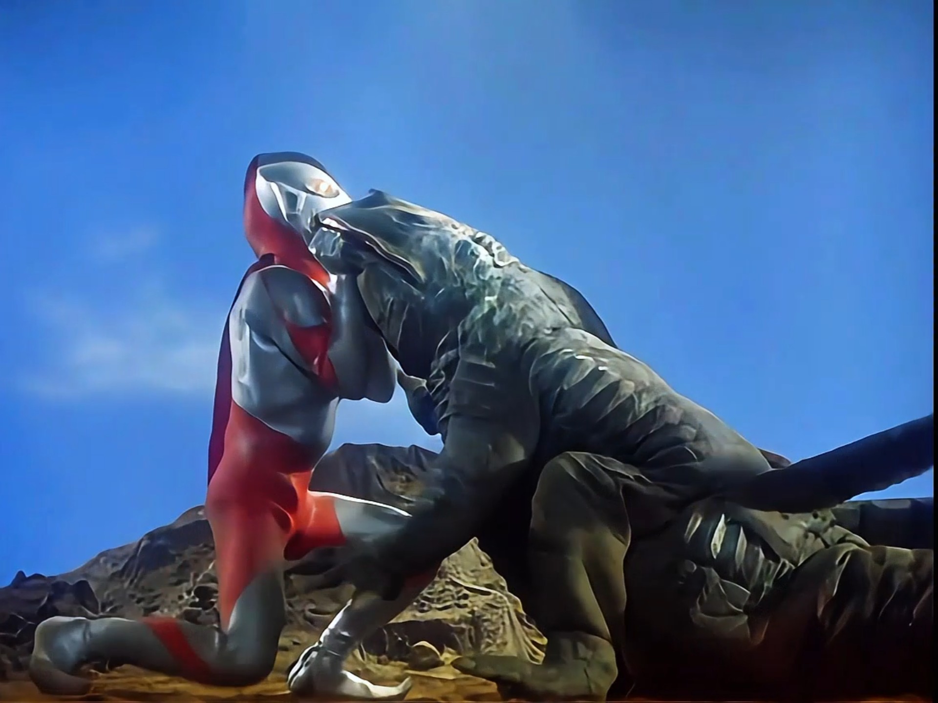 奥特曼绝地反击,摆出招牌动作,发出招牌光线把怪兽打倒了然而就是这老套路吸引了当年无数的小孩子们 我不明白这是为什么。
