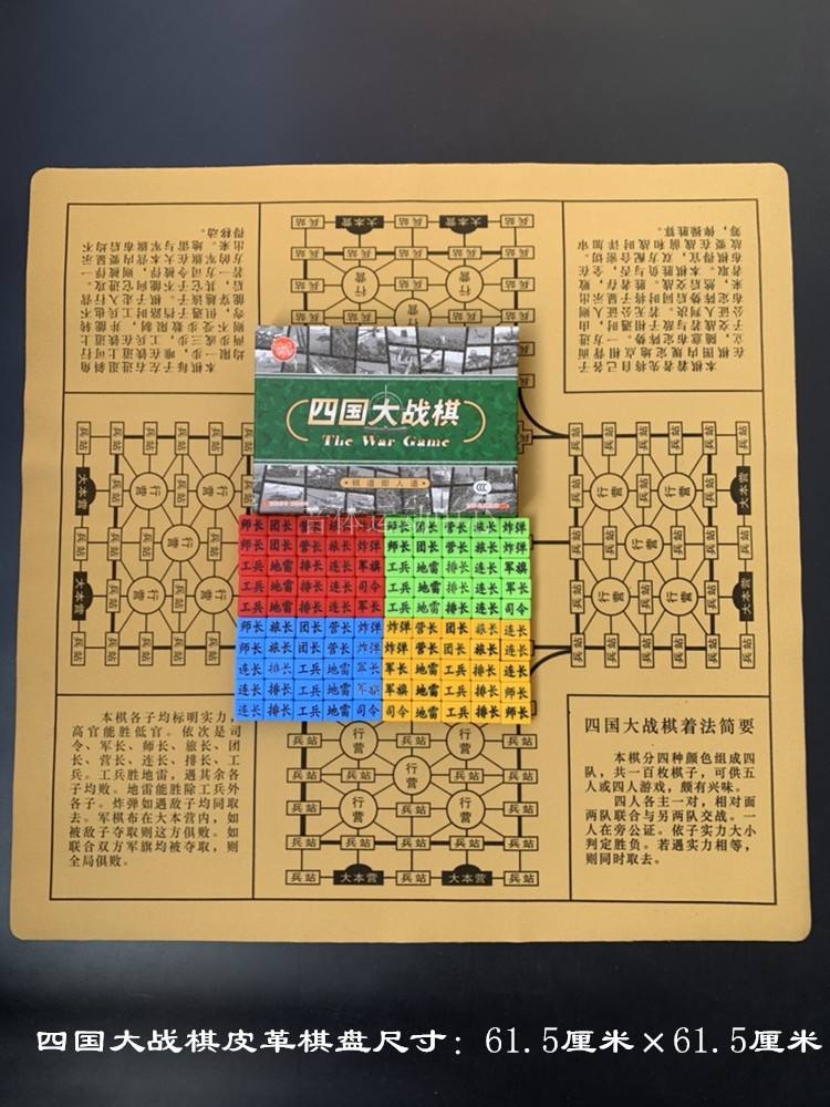其它棋子不能排雷炸弹与任何棋子相遇时同归于尽当四人时,四人在棋盘上分占四角,分为两方,相对的两家联合与另外两家对抗,互相配合战斗两人游戏时,则分占棋盘的上下两角,相互作战军棋分三种下法,一种是暗棋棋子立起,两人对决,需要裁判一种是明棋一种是翻棋字朝下摆军棋。