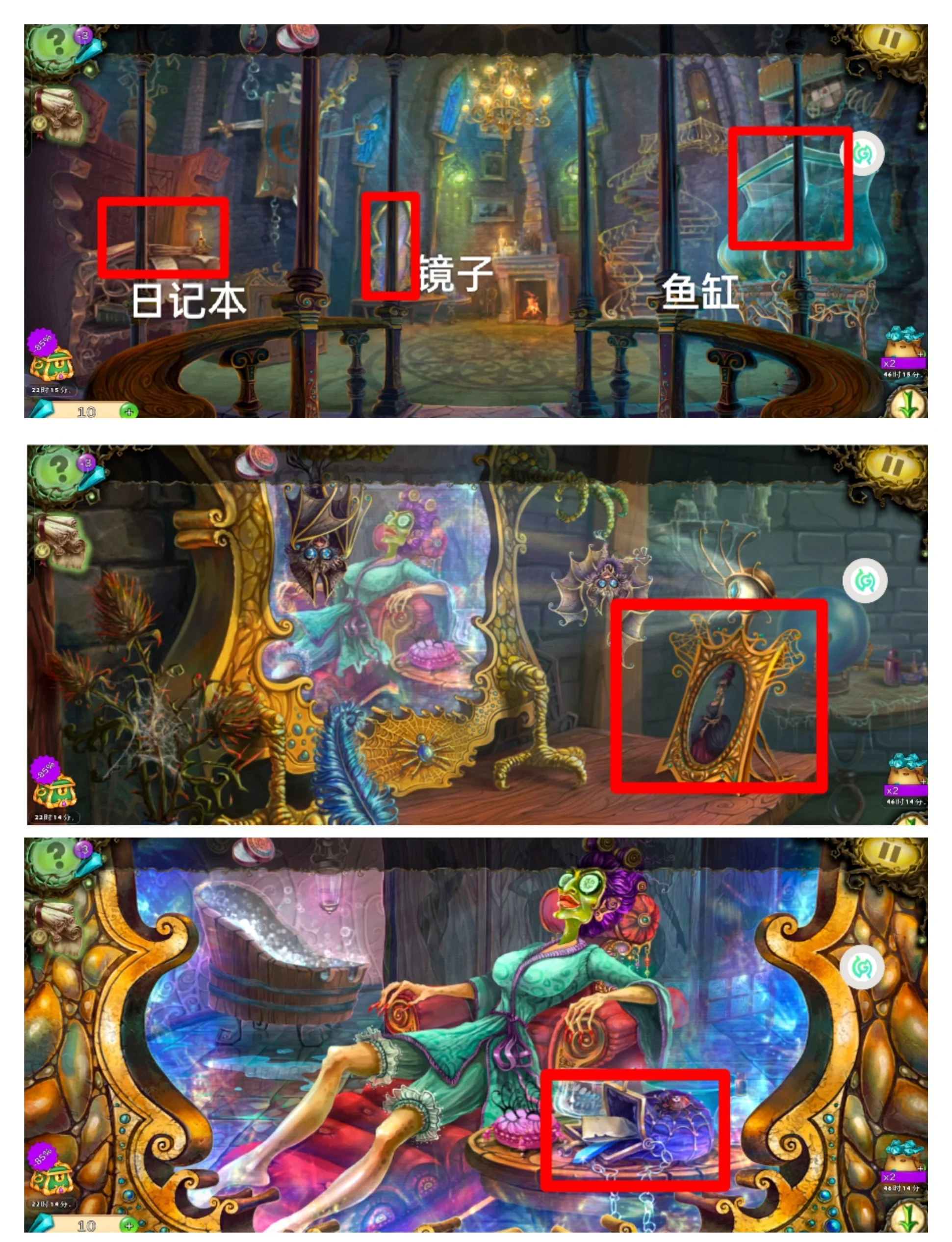 安卓手机游戏 密室逃脱 超详细傻瓜攻略 1取下门上的封条 2掀起黑色花纹挂毯,拿到第一个瓷砖富士山3两个书架,左边书架点下方,有一个瓷砖夹住了,移动书架,拿到第二块瓷砖鹰4右边书架,从下到上每层都有一本书有提示,每一个都好好看看 5壁炉上铁锅里面拿到夹子 6壁炉右边的鱼缸。