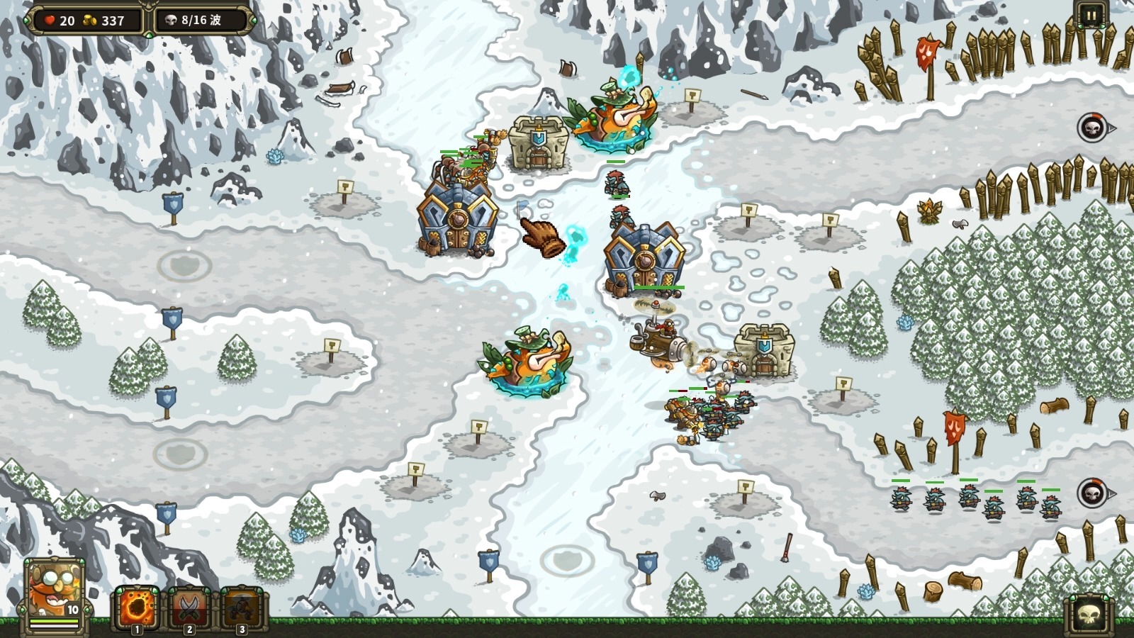 守卫者王国新手进攻技巧如下集中火力攻破一处防御塔在前期,城堡通常只开放正方和斜角的吊桥,建议新手玩家选择集中一个靠边的地点下兵集中火力先攻下一处防御塔,这样会增加可下兵的区域攻下第一座防御塔后,根据资源分布情况,选择靠近另一座防御塔或城堡的位置继续放兵基础兵种搭配在兵种搭配。