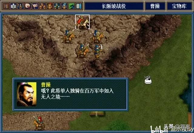 打法:赵云要把左面的三个村庄都找一遍,才能找到阿斗。开局给赵云加个攻buff,然后让他一个人去单挑对面,打的差不多了,让刘封去捡宝物。找到阿斗后,曹操(轻骑兵7级)带着曹洪、文聘、李典、夏侯杰从上方宝物库出现,张飞在右面桥上出现,接下来其他人躲到张飞身后,赵云一个人继续单挑,最后剩下曹操,然后走到张飞身后即可触发张飞剧情
