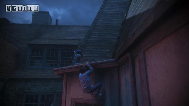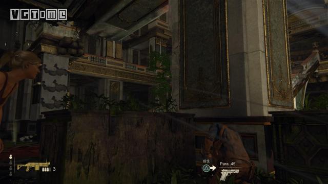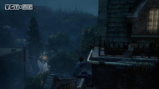 2.在利用绳索荡到对面后,玩家需要攀爬到前面左方的柱子背面才能继续前进,上去后还需要等待山姆扔绳索。