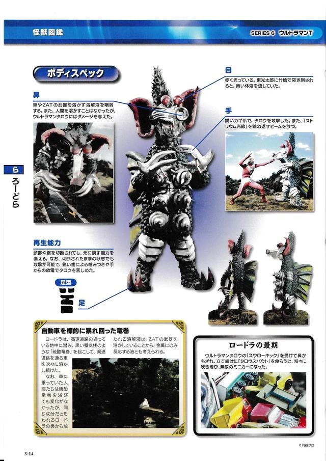 劳德拉属于超能力怪兽中的一员,是在高速道路地下潜藏并制造出海市蜃楼,通过海市蜃楼将过往车辆吸入并把车溶解。花洒似的长鼻子能喷出大量的溶解液, 此外还拥有再生能力,令泰罗一度受挫,但最后仍是被泰罗消灭。
