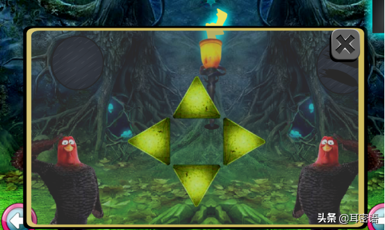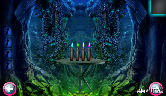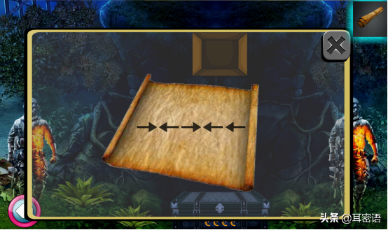 4、根据菠萝的排列线索,联想到三角按钮按动顺序,得到蜡烛,将蜡烛在火炬旁点燃